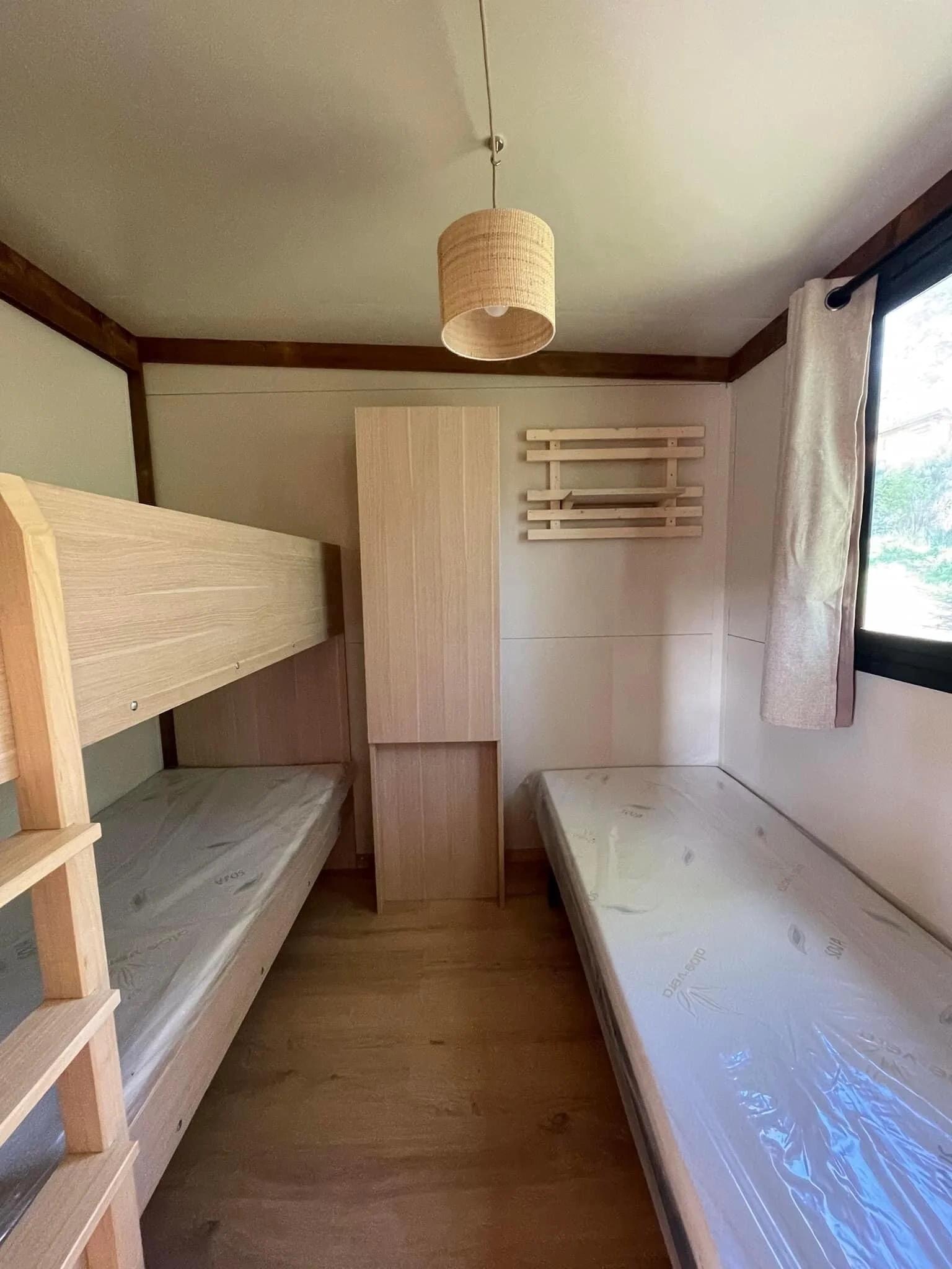 Les cinq chalets en bois, entièrement équipés, évoquent les cabanes d’enfance où tout semblait possible. Nichés au cœur d’un écrin de nature préservée, ils dévoilent une magnifique vue panoramique.
